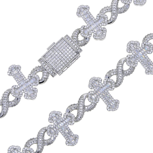 Iced Out Cross Infinity Charm Bracelet Micro Paved Cubic Zirconia Cuban Chain
