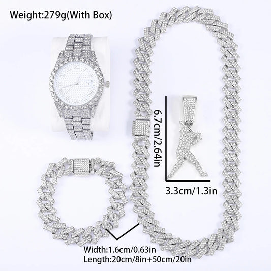 Hiphop Baseball Star Shape Pendant With Necklace Bracelet Exquisite Watch 4PCS 💎