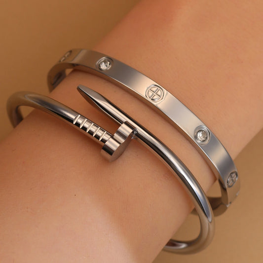 Luxury Brand Stainless Steel Slide Lover Bangles Full Crystal Stone Bracelets 💎