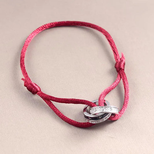 Diamond Adjustable Rope Bracelet Two Rings Interlock Stars ✨