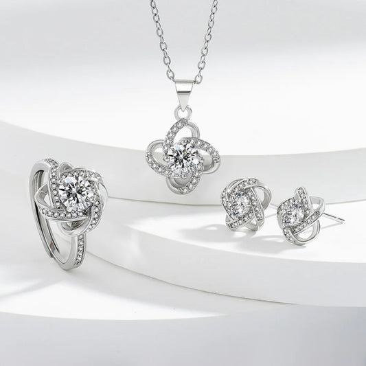 925 Sterling Silver Four-Leaf Clover Jewelry Set - Necklace Ring Earrings 💎